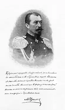 Mikhaïl Grigorievitch Tcherniaïev (22 octobre 1828 ( dans le calendrier grégorien) - ) est un général russe qui mena, avec les généraux von Kaufmann et Skobeliev, la conquête russe de l'Asie centrale sous le règne d'Alexandre II.