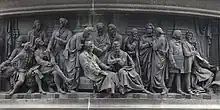 Plutôt étonnant pour un projet officiel de cette ampleur, les tsars et les dirigeants étaient représentés côte à côte avec seize figures éminentes de la culture russe : Mikhaïl Lomonossov, Denis Fonvizine, Alexandre Kokorinov, Gavrila Derjavine, Fiodor Volkov (ru), Nikolaï Karamzine, Ivan Krylov, Vassili Joukovski, Nikolaï Gnieditch, Alexandre Griboïedov, Mikhaïl Lermontov, Alexandre Pouchkine, Nicolas Gogol, Mikhaïl Glinka, Karl Brioullov, et Dmitri Bortnianski.