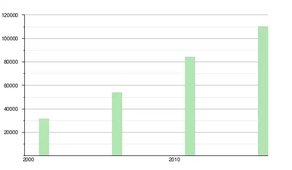 - L'âge de la population était réparti de la façon suivante : 26,4 % de la population avait 19 ans ou moins, 63,1 % de la population avait entre 20 et 64 ans et 10,5 % avait 65 ans ou plus.