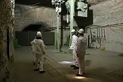 Espace d'amenée, 20 m au-dessus de l'espace 8a. Les colis de déchets de moyenne activité tombent par le couloir incliné vers l'espace 8a.