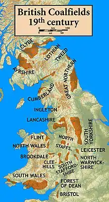 Les mines de charbon du Lanshire étaient concentrées dans la région de Wigan, avec la rivière Douglas au nord et la rivière Mersey au sud, qui se jettent toutes les deux dans l'Atlantique. Les gisements étaient fins, inclinés et profonds, souvent accessibles de la surface, mais rapidement inondés, lorsqu'on creusait plus profond