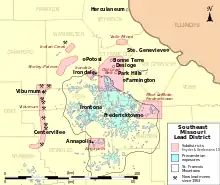 Les Mines de plomb du sud du Missouri, situées dans les montagnes Ozark, qui datent du tout début de la colonisation française, au XVIIIe siècle, forment la plus grande région d'extraction de plomb des États-Unis depuis trois siècles, appelée aussi « ceinture de plomb » (Lead Belt). L'ancienne ceinture était centrée sur Park Hills et Desloge dans le Missouri, tandis que la nouvelle ceinture de plomb est proche de Viburnum, toujours dans le Missouri.