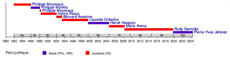 | Rudy Demotte | PS | – (11 ans, 5 mois et 28 jours) |