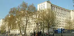 Le ministère occupe aujourd'hui un bâtiment construit de 1938 à 1959 dans le style néoclassique par l'architecte Vincent Harris, à l'emplacement de l'ancien palais de Whitehall.