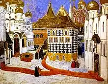 Constantin Korovine et Alexandre Golovine sont des représentants de Mir Iskousstva qui ont fait pénétrer les conceptions esthétiques du mouvement dans les mises en scène des Théâtres impériaux. Un des aspects les plus importants de l'activité artistique de Constantin Korovine est la décoration de théâtre. Il a commencé par faire les décors pour l'opéra privé de Mamontov. Puis il est nommé aux Théâtres impériaux en 1898. Là il enrichit de ses décors les mises en scène de drames et de ballets. Alexandre Golovine, quant à lui, commence ses activités de peintre de décor au Théâtre Bolchoï, puis, en 1902, il devient décorateur principal des Théâtres Impériaux à Saint-Pétersbourg. Ses décors de Boris Godounov en 1908 est un modèle du genre pour l'époque.