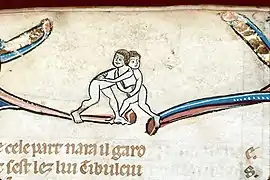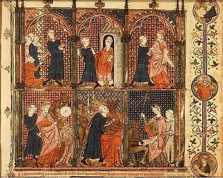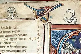 Ce manuscrit[7] est attribué à Jean de Senlis (pour le texte) et à Maître Fauvel pour les enluminures ; il date de 1327 et est composé de 189 folios ; le manuscrit est la deuxième partie d'un ouvrage dont la première partie, un légendier, est à la BnF, cote Français 183[8].