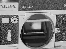 Verre de visée télémétrique vu par réflexion dans le miroir d'un boîtier reflex mono-objectif (objectif enlevé)