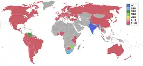 | Disparitions | Aruba, Bermudes, El Salvador, Honduras, Lituanie, Malte, Namibie, Ouganda, Uruguay | |||||||