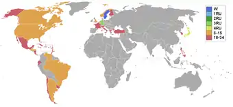 - L'Angleterre, la Belgique, Ceylan, le Guatemala, le Honduras, le Salvador et le Venezuela réalisent leur premier classement.