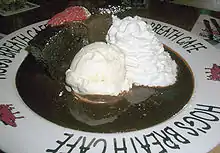 Sa richesse et sa densité atypique le rapprochent beaucoup du kladdkaka, un gâteau d'origine suédoise aussi appelé « le brownie suédois »[4], lui aussi servi avec de la crème fouettée ou de la glace à la vanille.