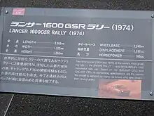 - Article A Glorious Heritage - Chronological history of Mitsubishi Motor Sports activities, MITSUBISHI LANCER 1600 GSR, sur le site officiel www.mitsubishi-motors.co.jp