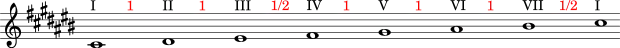 (en) Cet article est partiellement ou en totalité issu de l’article de Wikipédia en anglais intitulé « Major scale » (voir la liste des auteurs).