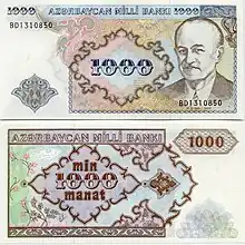 Monnaie azerbaïdjanaise : 1000 Manat (1993) jusqu'en 2001.
