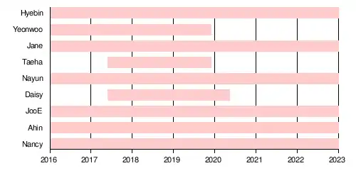 | Yeonwoo | 연우 | Lee Da-bin | 이다빈 |  Sud-coréenne | Chanteuse, danse, rappeuse principale, visuel, centre | ||