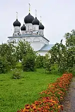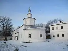 Dans l'angle Nord-Ouest du mur d'enceinte, on remarque la petite église de l'Assomption de type « octogone en cube », avec un dôme à bulbe achevé sur un octogone, jouxtée à l'ouest par un bâtiment sans étage de cellules d'infirmerie datant du XVIIIe siècle et par un bâtiment à étage du XIXe siècle. Dans la partie orientale, marquant l'entrée principale du monastère, il y a une église-porte à un dôme, placée sous le vocable de Saint Nicolas, contre laquelle le réfectoire s'étend dans la direction transversale adjacent à l'ouest. Le jardin potager et le verger du monastère étaient situés derrière la partie Nord de la clôture.