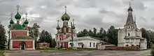 à droite : église Saint-Pierre-le-Métropolite de Pereslavl-Zalesski, au centre la cathédrale de l'Icône-de-la-Mère-de-Dieu-de-Vladimir, à gauche l'église Saint-Alexandre-Nevski.