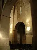 Les travaux de construction de l'église débutèrent en 1174 et se terminèrent vers 1225. Cependant, en 1211, les travaux durent être suffisamment avancés afin que puisse être réalisé le sacre du temple. Le schéma au sol correspond à une croix latine avec trois nefs, la plus large étant la nef centrale, constituées de six travées depuis l'entrée jusqu'au transept. Ce dernier est aussi large que la nef centrale, ce qui donne une croisée de plan carré. Sur le côté oriental de ses bras s'ouvrent deux chapelles "absidiales" qui se remarquent très peu de l'extérieur.