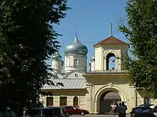 Le catolicon du monastère est l'église de l'Intercession de la Mère de Dieu qui est connue depuis le XIIe siècle. Au début elle était construite en bois, puis en 1335 l'archevêque Vasili construisit à sa place une église en pierre. L'édification se poursuivit jusqu'en 1399. Après une dévastation due à la guerre avec les Suédois l'église est consacrée à la fête de la Déposition de la robe de la Vierge. En 1851 l'écrivain, homme d'État russe Ivan Muravyov-Apostol (en) (1762-1851) est enterré à proximité de l'église.