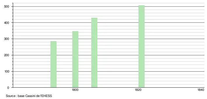 Jusqu'en 1819, la démographie de Monceau-le-Neuf était :