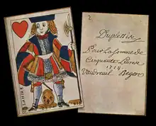 Selon P. N. Breton, « on ne trouve une première description des cartes que dans la délibération prise le 1er octobre 1711 par MM. de Vaudreuil, gouverneur ; Raudot, intendant ; et de Monseignat, contrôleur de la marine ; mais au sujet seulement de la fabrication de 3 000 cartes de 100 livres et de 3 000 cartes de 50 livres : l'écriture des cartes de 100 livres en travers, sur des cartes noires (c'est-à-dire des cartes aux figures noires). Et l'écriture des cartes de 50 livres de haut en bas, sur des cartes rouges entières (c'est-à-dire aux figures rouges)[8]. »