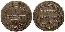 Avec la République helvétique, et pour la première fois depuis l'Empire romain, une monnaie unique remplace les très nombreuses monnaies cantonales suisses. Les pièces sont sur le modèle du canton de Berne[1]. Les législateurs de cette époque apportent un soin particulier à éliminer les pièces venant des pays en guerre avec la France.