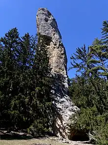 Le monolithe s'élève sur une hauteur de 93 mètres dans une forêt de résineux classée comme site Natura 2000.