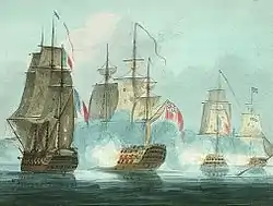 Le HMS Caesar engageant Le Mont-Blanc à la bataille du cap Ortegal, .