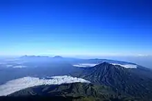 | .jpg.webp)  Vue du mont Abang dominant le lac Batur. | |
