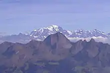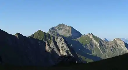 Vue de la face occidentale du mont Charvin depuis l'Aulp de Marlens. | ||||