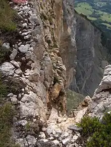 Cette face nord est constituée d'une falaise de près de 900 m de hauteur, apparue dans la nuit du 24 au à la suite d'un gigantesque glissement de terrain ayant fait disparaître une partie de la montagne. C'est probablement le plus grand éboulement connu de l'histoire de l'Europe[2]. Le nombre de victimes est estimé à près de 1 000[2], et cette catastrophe a donné naissance à l'une des plus grandes falaises calcaires de France avec 700 mètres d'à-pic.