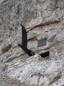 Pour les randonneurs aux pieds sûrs et sans vertiges avec une certaine capacité d'escalade, il y a la possibilité d'atteindre le sommet par un sentier passant dans un tunnel, sur un pont suspendu et sur des échelles en fer utilisées lors de la Première Guerre mondiale, qui ont été restaurés en 1974/75.