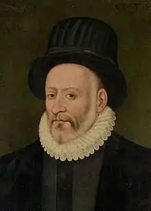 Michel Eyquem de Montaigne, seigneur de Montaigne (prononcé à l'époque «Montagne»)[1], plus connu sous la simple dénomination de Montaigne, né le et mort le au château de Saint-Michel-de-Montaigne (Dordogne), est un philosophe, humaniste, écrivain érudit et moraliste français de la Renaissance.