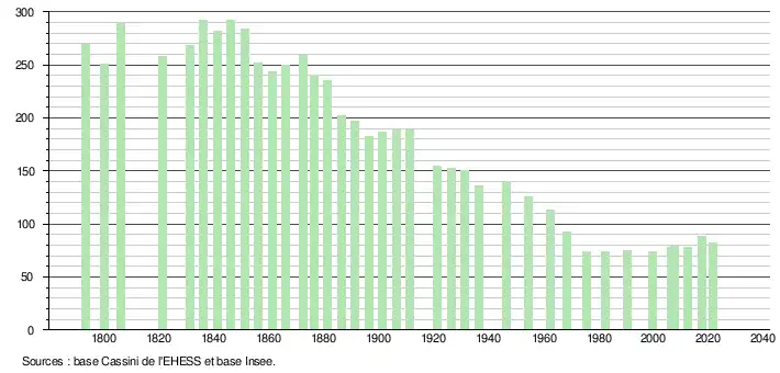 | Rang de la commune dans le département | 322 | 353 | 304 | 339 | 306 | 340 | 344 | 337 |