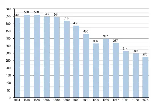 - Sources : INS, Rem. : 1831 jusqu'en 1970 = recensements, 1976 = nombre d'habitants au 31 décembre.