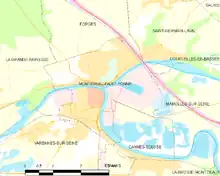 Parallèlement, L'Institut Paris Région, agence d'urbanisme de la région Île-de-France, a mis en place un inventaire numérique de l'occupation du sol de l'Île-de-France, dénommé le MOS (Mode d'occupation du sol), actualisé régulièrement depuis sa première édition en 1982. Réalisé à partir de photos aériennes, le Mos distingue les espaces naturels, agricoles et forestiers mais aussi les espaces urbains (habitat, infrastructures, équipements, activités économiques, etc.) selon une classification pouvant aller jusqu'à 81 postes, différente de celle de Corine Land Cover[41],[42],[Carte 3]. L'Institut met également à disposition des outils permettant de visualiser par photo aérienne l'évolution de l'occupation des sols de la commune entre 1949 et 2018[Carte 4].