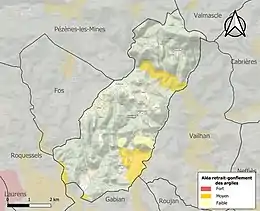 Le retrait-gonflement des sols argileux est susceptible d'engendrer des dommages importants aux bâtiments en cas d’alternance de périodes de sécheresse et de pluie. 9,9 % de la superficie communale est en aléa moyen ou fort (59,3 % au niveau départemental et 48,5 % au niveau national). Sur les 68 bâtiments dénombrés sur la commune en 2019, 7 sont en aléa moyen ou fort, soit 10 %, à comparer aux 85 % au niveau départemental et 54 % au niveau national. Une cartographie de l'exposition du territoire national au retrait gonflement des sols argileux est disponible sur le site du BRGM[15],[Carte 2].