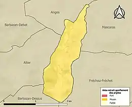 Les communes les plus proches[Note 1] sont[3] : Angos (1,1 km), Fréchou-Fréchet (1,4 km), Mascaras (1,7 km), Barbazan-Dessus (2,3 km), Allier (2,4 km), Calavanté (2,4 km), Barbazan-Debat (2,8 km), Oueilloux (2,8 km).