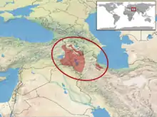 Aire de répartition de l'espèce Montivipera raddei selon l'UICN (consulté le ).