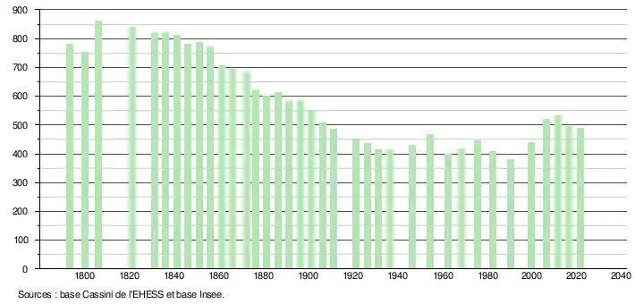 489 hab. (2021 en diminution de 3,93 % par rapport à 2015)