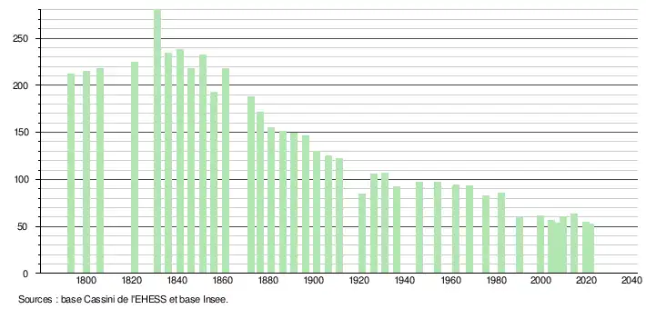 (Sources : Ldh/EHESS/Cassini jusqu'en 1999[19] puis Insee à partir de 2006[20].)