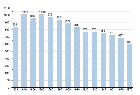 - Sources : INS, Rem. : 1831 jusqu'en 1970 = recensements, 1976 = nombre d'habitants au 31 décembre.