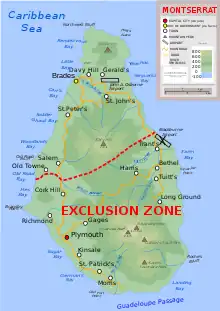 Depuis le réveil de la Soufrière en , la plupart des Montserratiens voient leur existence bouleversée. Près de la moitié d'entre eux ont quitté l'île et trouvé refuge ailleurs, notamment dans l'archipel voisin d'Antigua-et-Barbuda et au Royaume-Uni. Ceux qui sont restés et qui résident dans la zone à risque ont été évacués vers le nord de l'île, sur une portion qui représente un tiers du territoire.