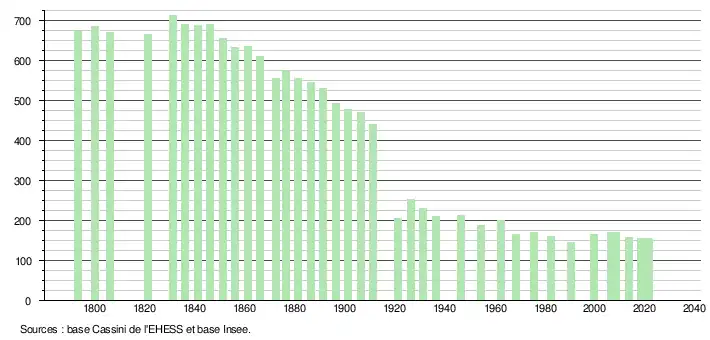 (Sources : Ldh/EHESS/Cassini jusqu'en 1999[18] puis Insee à partir de 2006[19].)