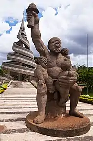 Le monument de la Réunification est l'œuvre du français Salomon, du sculpteur camerounais Gédéon Mpando et du père jésuite Engelbert Mveng. Cette œuvre représente cinquante-trois tonnes de béton et une hauteur d’environ sept mètres[1].