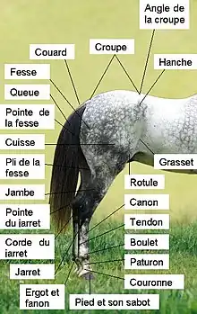 L'arrière-main est la partie du cheval située derrière la selle. Elle se compose[d 1],[c 1] :