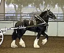 Un Clydesdale, cheval hypermétrique (1,70 m en moyenne)