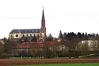 Ancien château des Zu Rhein[37] : château reconstruit en 1726 à l'emplacement d'un ancien château par François Joseph Conrad Zu Rhein ; armoiries au-dessus de la porte martelées pendant la Révolution ; château acheté en 1860 par Albert Tachard (avocat parisien) qui aurait fait ajouter un étage au château et qui a fait construire une ferme modèle Napoléon III en briques polychromes dans l'enclos ; du château, très endommagé pendant la dernière guerre, ne subsistent que des vestiges ; la chapelle funéraire a disparu.