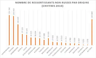 - (ru) Département du Service fédéral des statistiques de Moscou et de l'oblast de Moscou, Recensement de la population panrusse 2010, Composition ethnique de la population, Moscou, (présentation en ligne, lire en ligne)