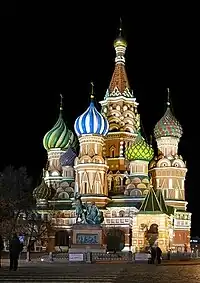 ![]() ![]() ![]() ![]() ![]() ![]() De haut en bas, de gauche à droite : la place Rouge avec la cathédrale Basile-le-Bienheureux, le mausolée de Lénine et la tour Spasskaïa, la cathédrale du Christ-Sauveur de Moscou, le théâtre Bolchoï, le bâtiment principal de l'université d'État de Moscou, Moskva-City, la Moskova avec le kremlin de Moscou. |