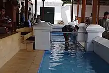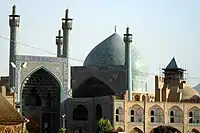 La place de la mosquée en Iran est notable à plusieurs titres. La mosquée, en plus d'un sanctuaire religieux, est aussi un lieu public où n'importe qui peut pénétrer. De plus, elle offre un véritable service public en mettant à disposition de l'eau courante et des toilettes[39]. La mosquée participe à la vie sociale d'un quartier. Elle fournit un lieu de prière et de repos à certaines catégories d'habitants ou de travailleurs du quartier, et est également un maillon essentiel entre les « sources d'imitation » (marja-e taqlid) et les populations religieuses.